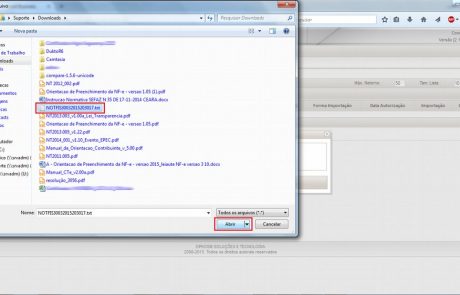 Na tela seguinte clique no botão para ‘Importar’ para abrir a caixa de seleção do arquivo NOTFIS. Na caixa vão aparecer duas opções. A primeira é o nome da empresa e a segunda opção é onde você deve selecionar o tipo de arquivo que irá importar as notas, XML ou NOTFIS. Selecione NOTFIS e depois clique Selecionar para procurar o arquivo em seu computador. Para isso abrirá uma janela do Windows. Navegue até a pasta onde o arquivo esta salvo, selecione o arquivo e clique no botão abrir.